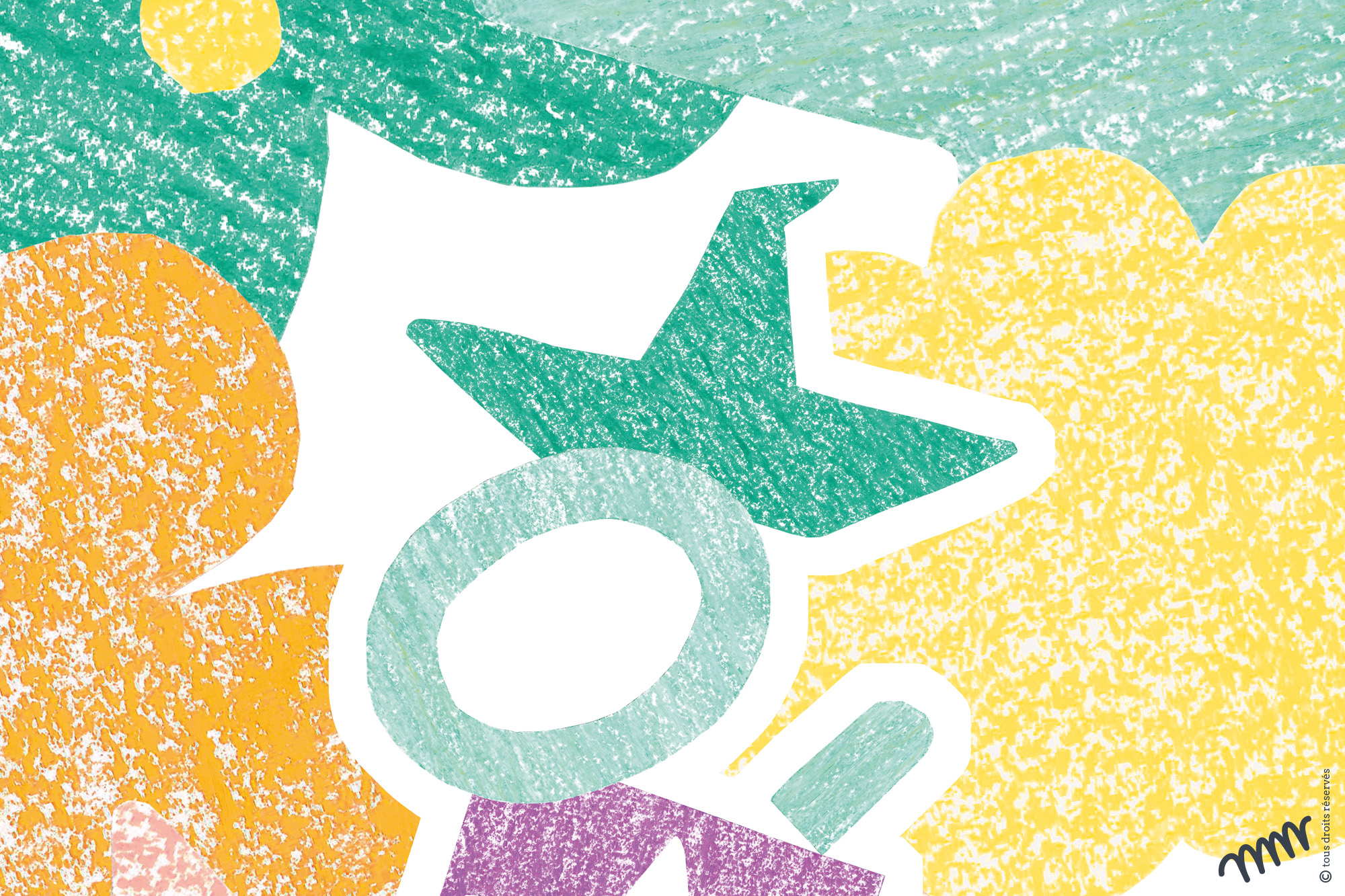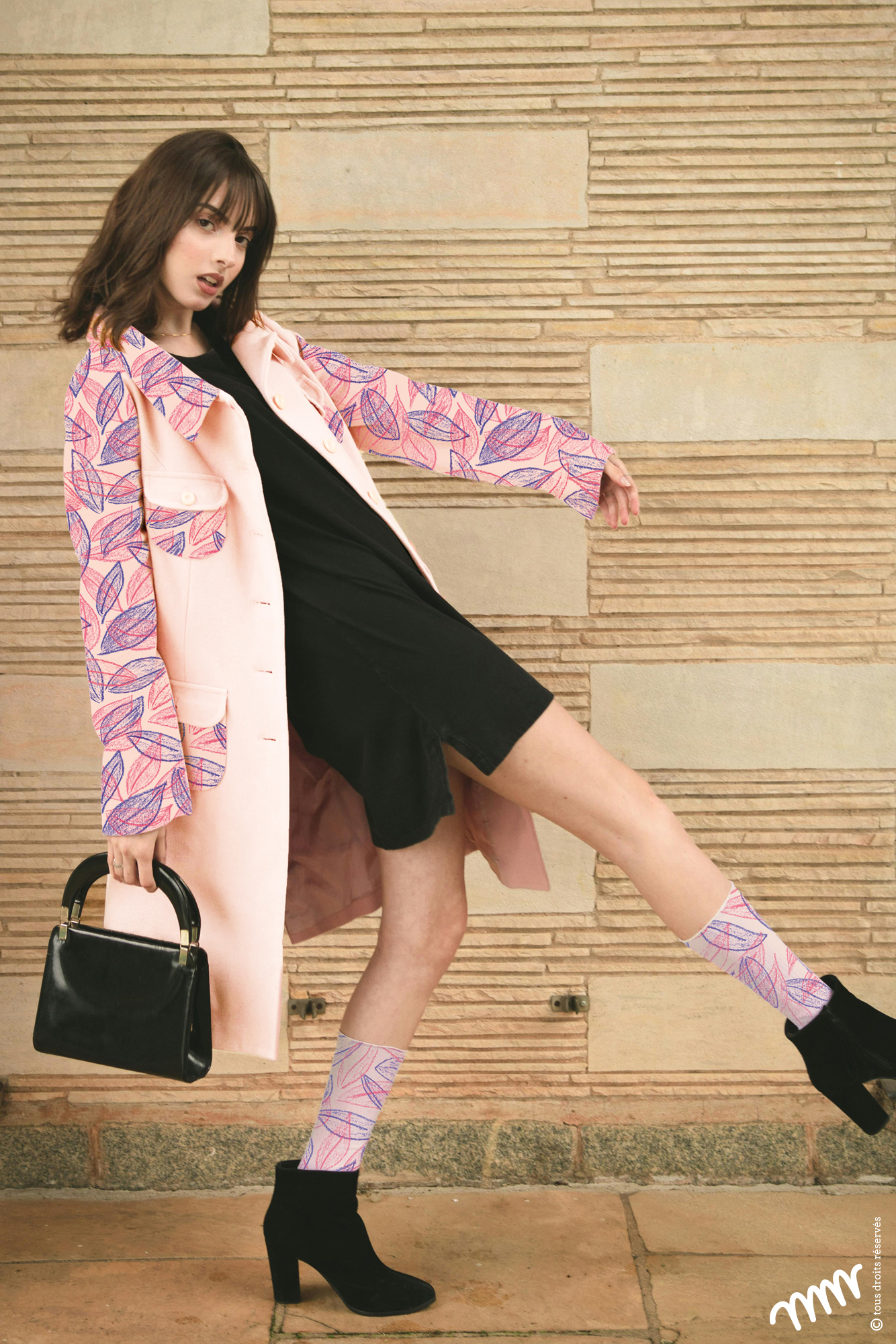 Motif à la craie grasse dans un duo coloré de tons rose et violet avec un esprit de légèreté et de transparence.