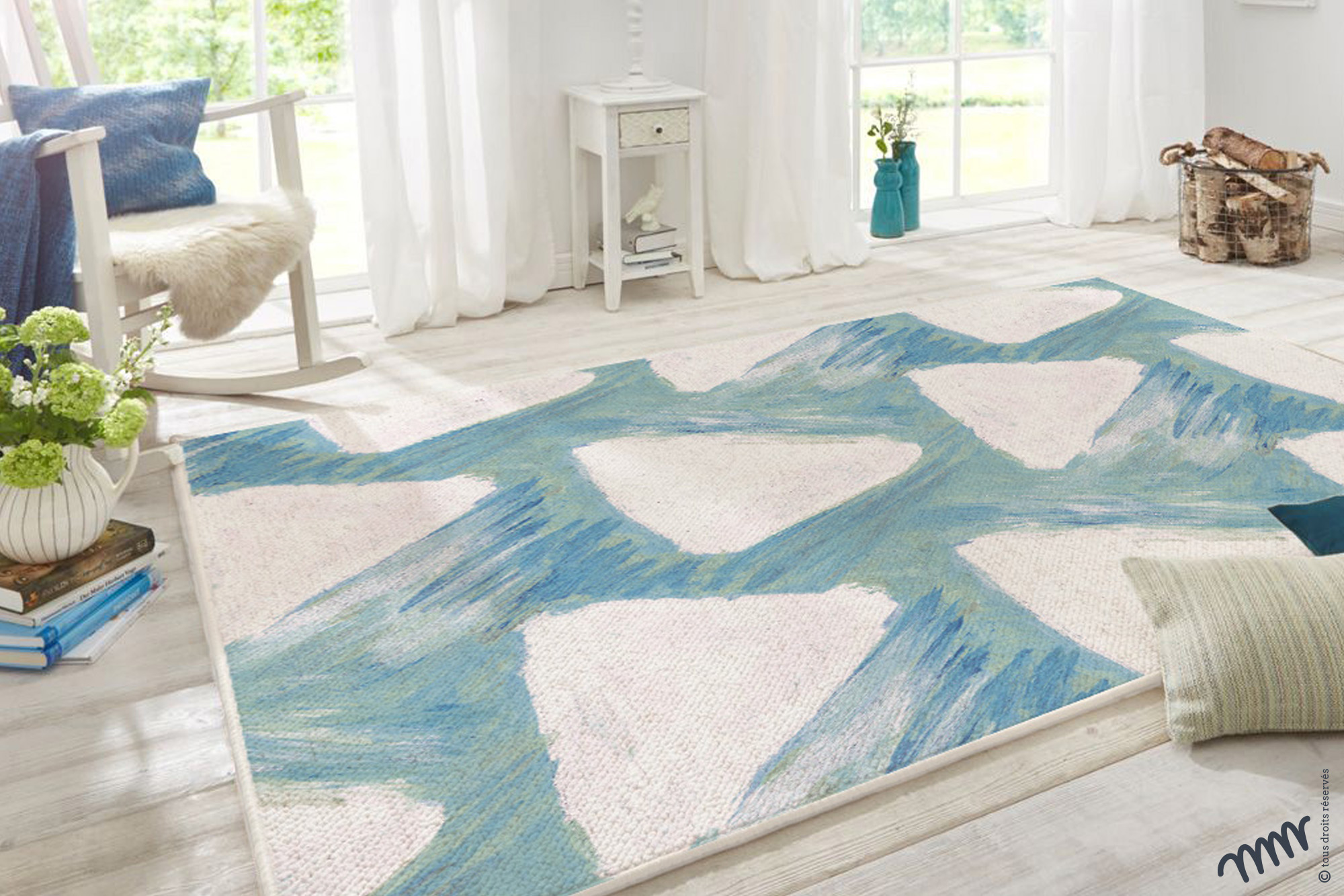 Collection de motifs pour tapis sur un thème marin et abstrait de marais salants, coloris Atlantique.