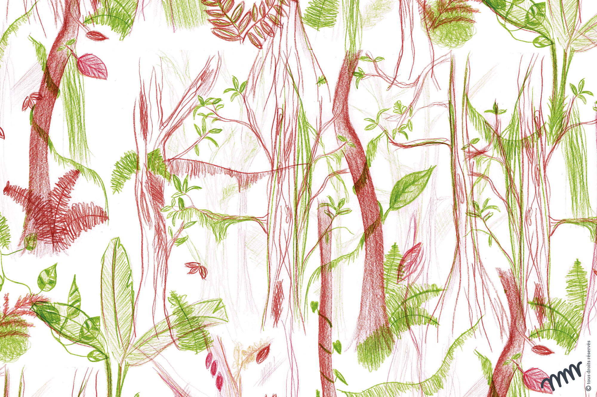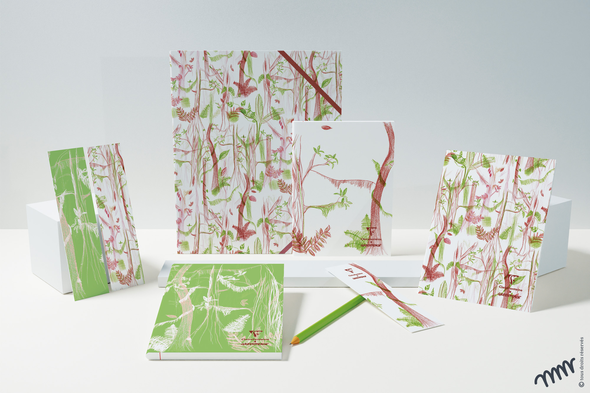 Ligne de papeterie pour sensibiliser les consommateurs à la déforestation dans un motif crayonné fluide. Se décline en plusieurs coloris.