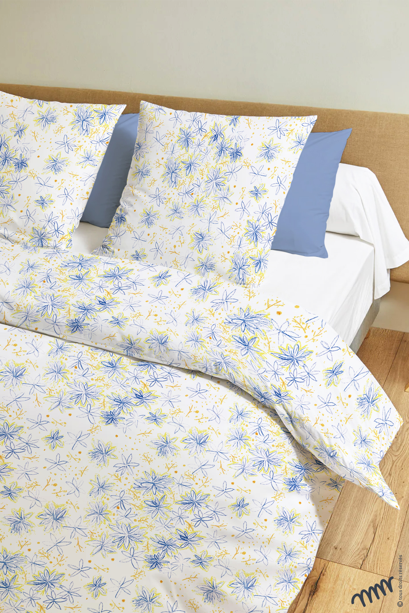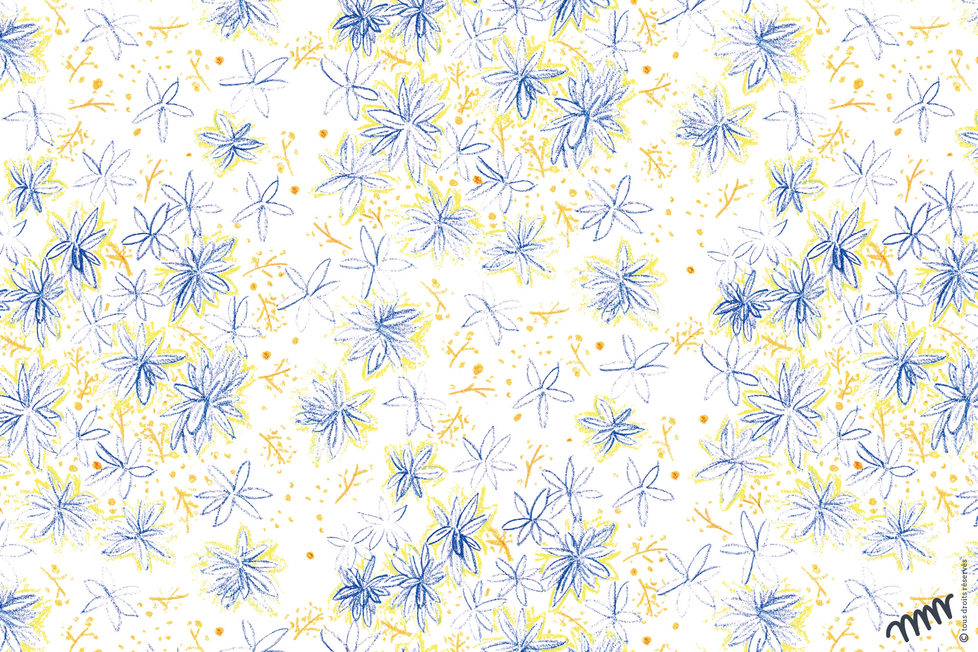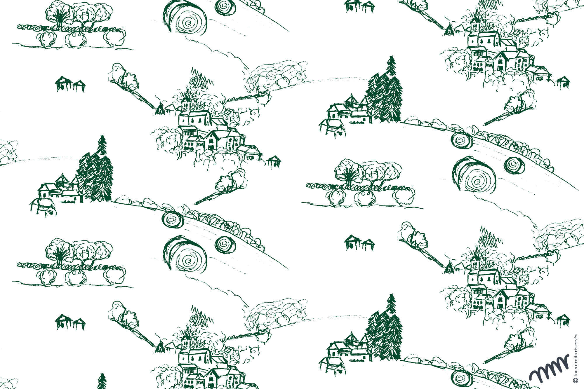 Motif dans un esprit toile de Jouy crayonné dans un style graphique rapide. Se décline en plusieurs coloris.